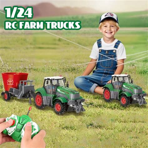 Rc Farm Trucks Set 1/24 Remote Control Tractor Toys For Children Agriculture Transporter Engineering