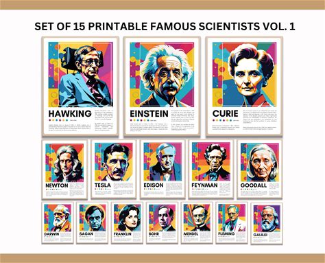 Set Of 15 Printable Famous Scientists Posters - Retro Style Wall Art For Classroom Decoration, Science Classroom, Bulletin Board, Digital