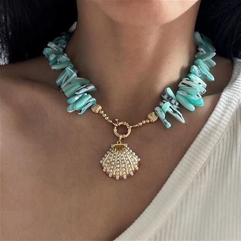 Mermaid Vibes Sea Shell Necklace Chunky Blue Seashell Choker Summer Beach Wedding Jewelry