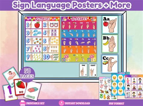 Pink Sign Language Alphabet-Digital Download ASL, Inclusive Learning Tools, Sign Language Poster, Girly Classroom Decor, Learn Sign Language