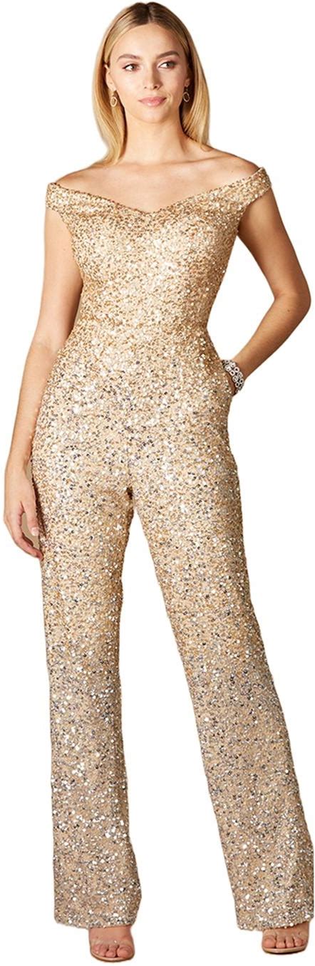 Women's Lara Beaded Bridal Off Shoulder Jumpsuit - Gold/Silver