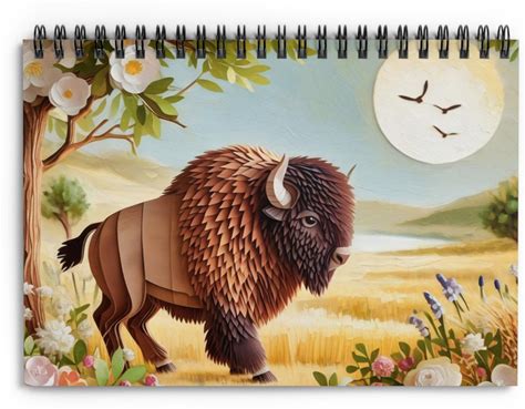 Floral Bison Notebook: Origami Buffalo Stationery Gift