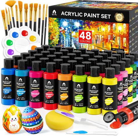 Acrylic Paint Set, 48 Colors, 2Oz/60Ml Bottles With 12 Brushes, 2 Knives & Palette - For Adults, Artists & Beginners - Arts And Crafts Painting Kit