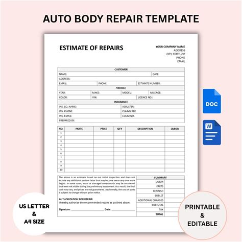 Printable - Vehicle Repair