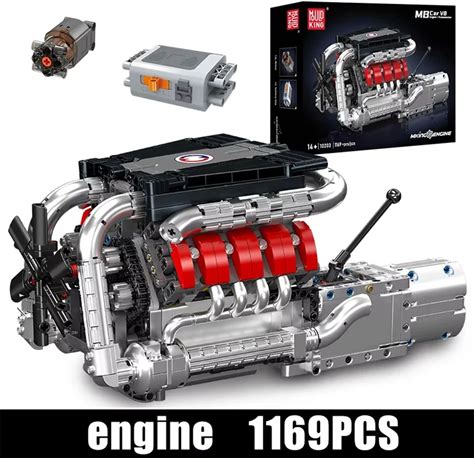 MOC Supercar F1 Motorized V8 Engine Model Building Blocks Car Parts Electrical Drive Engine Assembly