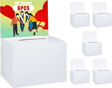 Uniclife 6 Pack Ballot Boxes With Slot 6.5" X 4.5" X 4.5" Suggestion Boxes Donation Box For Fundraising White Cardboard Box With Removable Header For