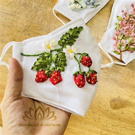 Embroidered Linen Mask With Nose Wire, Unique Gift, Ribbon Embroidery Masks, Washable, Reusable