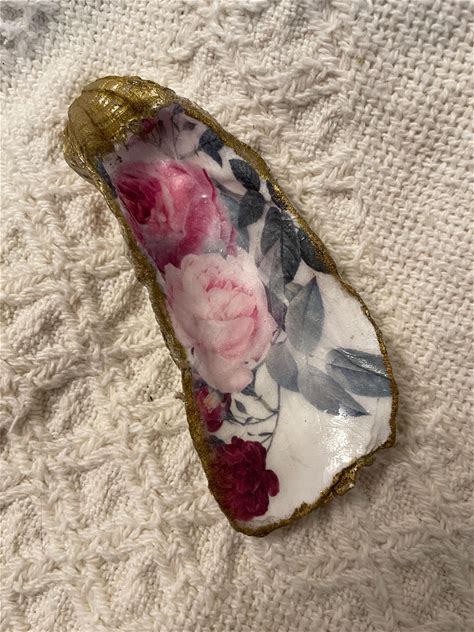 Decoupaged Shells - Decoupage Oyster Shell With Red And Pink Roses