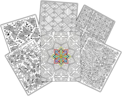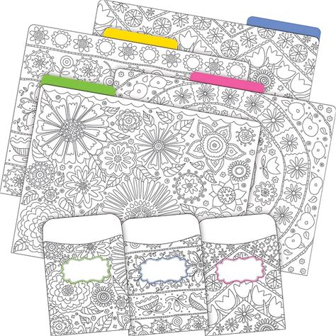 C-Line Ucolor Two Pocket Coloring Folders, Set Of 6 Assorted Adult Patterns (15217) White