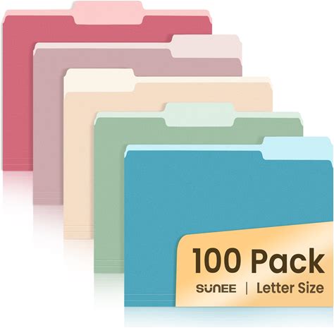 SUNEE File Folders Letter Size Assorted Colors, 100 Pack Manilla Folders 8.5 X 11 1/3-Cut Tabs, Colored File Folders Office Home School For Documents