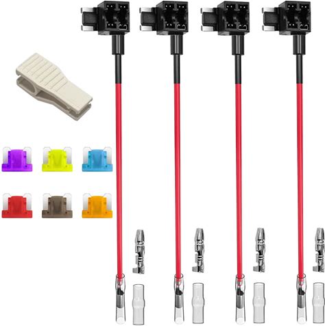 Gebildet 12V-24V Low Profile Add-A-Circuit Fuse Tap, Miniature Piggy Back Blade Fuse Holder With Wire Harness, 6 Pcs Fuse (3A 5A 7.5A 10A 15A 20A) And