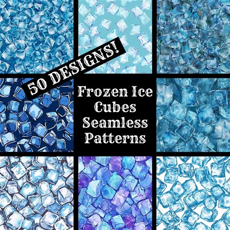 Ice Cubes Seamless Pattern: 50 PNG Digital Papers (Digital Download)