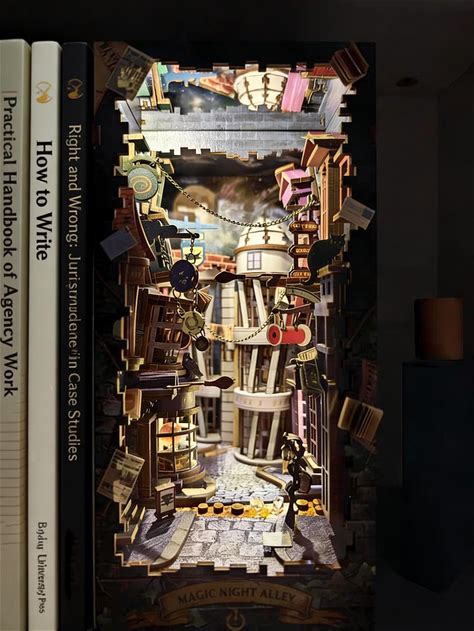Magic Night Alley, Library, Wooden Miniature Book Corner, Bookshelf Plug-In, 3D Wooden Puzzle, Bookshelf Decoration, Harry's Magic House