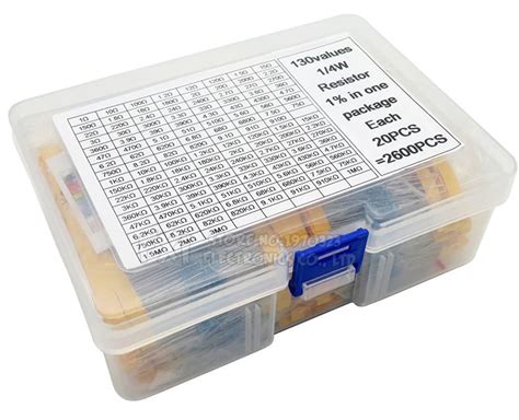 2600Pcs 130 Values 1/4W 0.25W 1% Metal Film Resistors Assorted Pack Kit Set Lot Resistors Assortment