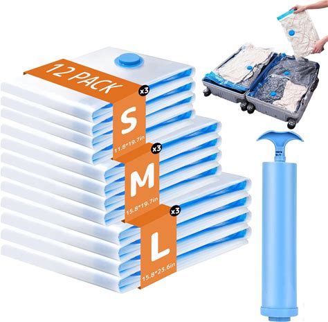 Roll-Up Compression Storage Bags For Clothes And Towels, No Vacuum Needed, Clear, 12 Pack (6 Small &