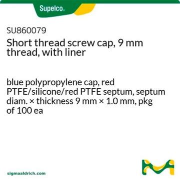 Supelco Short Thread Screw Cap, 9 mm Thread, With Liner, Blue Polypropylene Cap, Red PTFE/Silicone/Red PTFE Septum