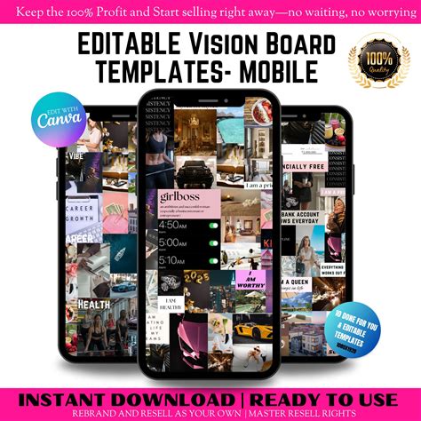 Editable Mobile Vision Board Template: Canva Planner (Digital Download)