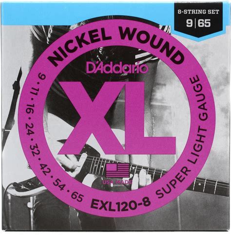 D'addario EXL120-8 XL Nickel Wound Electric Guitar Strings - .009-.065 Super Light 8-String .009-.065 Super Light Gauge Electric Guitar Strings,