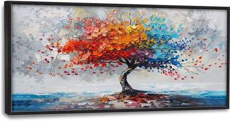 Framed Abstract Tree Canvas Wall Art Extra Large Colorful Tree Painting Print Modern Artwork For Living Room Bedroom Office Decor Home Decorations 24"