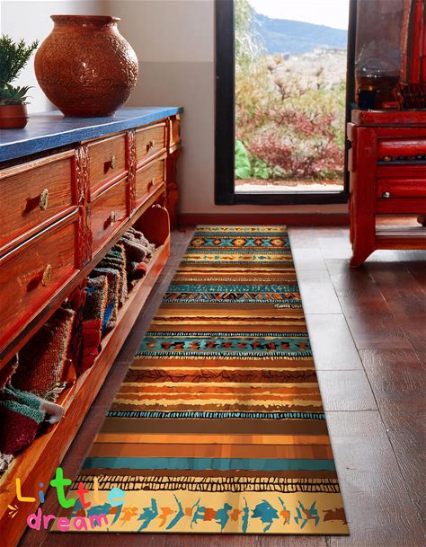 Colorful Aztec Runner Rug: Traditional Southwestern Design