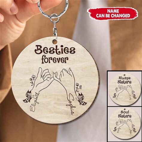 Besties Forever Pinky Promise Flower Butterfly Custom Best Friend Gift Wooden Keychain