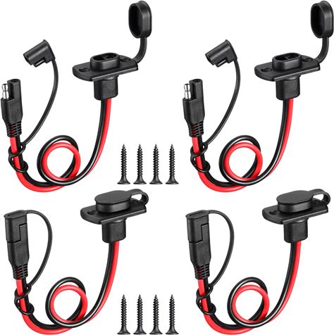 Tuanse 4 Pcs 12 AWG Power Socket Sidewall Port Compatible With SAE Quick Connect Solar Panel Weatherproof Solar Panel Cables And Connectors Battery
