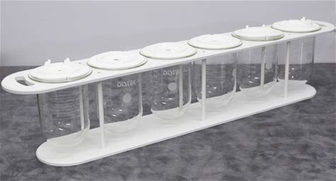 Distek 3010-0096 X6 Dissolution Vessels W/ Caps And Rack For Bathless Testing