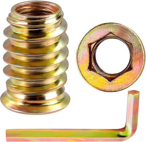 Glarks 50Pcs 5/16"-18 X 25mm Threaded Inserts Nuts Zinc Plated Carbon Steel Hex Socket Drive Furniture Flanged Screw-In Nut With M8 Hex Wrench For