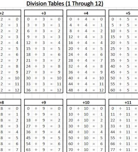 Shop math division table chart