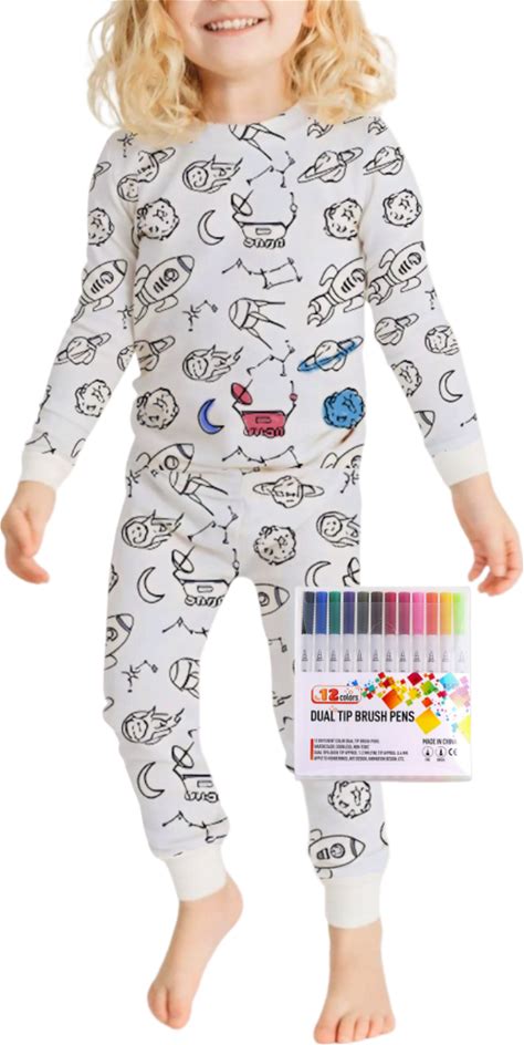 Craftikit® Kids Coloring Pajamas With Markers - Soft Bamboo Viscose 2-Piece Unisex Pjs Set, Snug Fit Color Your Own Pajamas