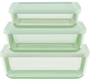 Pyrex Simply Store Tinted Green Rectangle Storage Set With Plastic Lids (6-Piece) 1149598