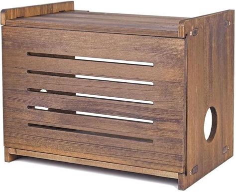 Solid Wood Projector Router Modem Shelf Stand Storage Box Cable Management Rack Cover Organizer Natural Finish