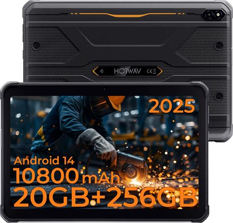 HOTWAV R10 Pro 2025 Rugged Tablet Android 14-10.1 Inch HD+ 10800Mah Waterproof Tablet, 20GB RAM+256GB ROM/1TB TF Outdoor Tablets, 13MP+5MP Camera